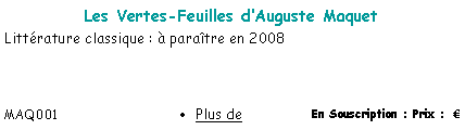 Catalogue de nos publications dans l’ordre chronologique